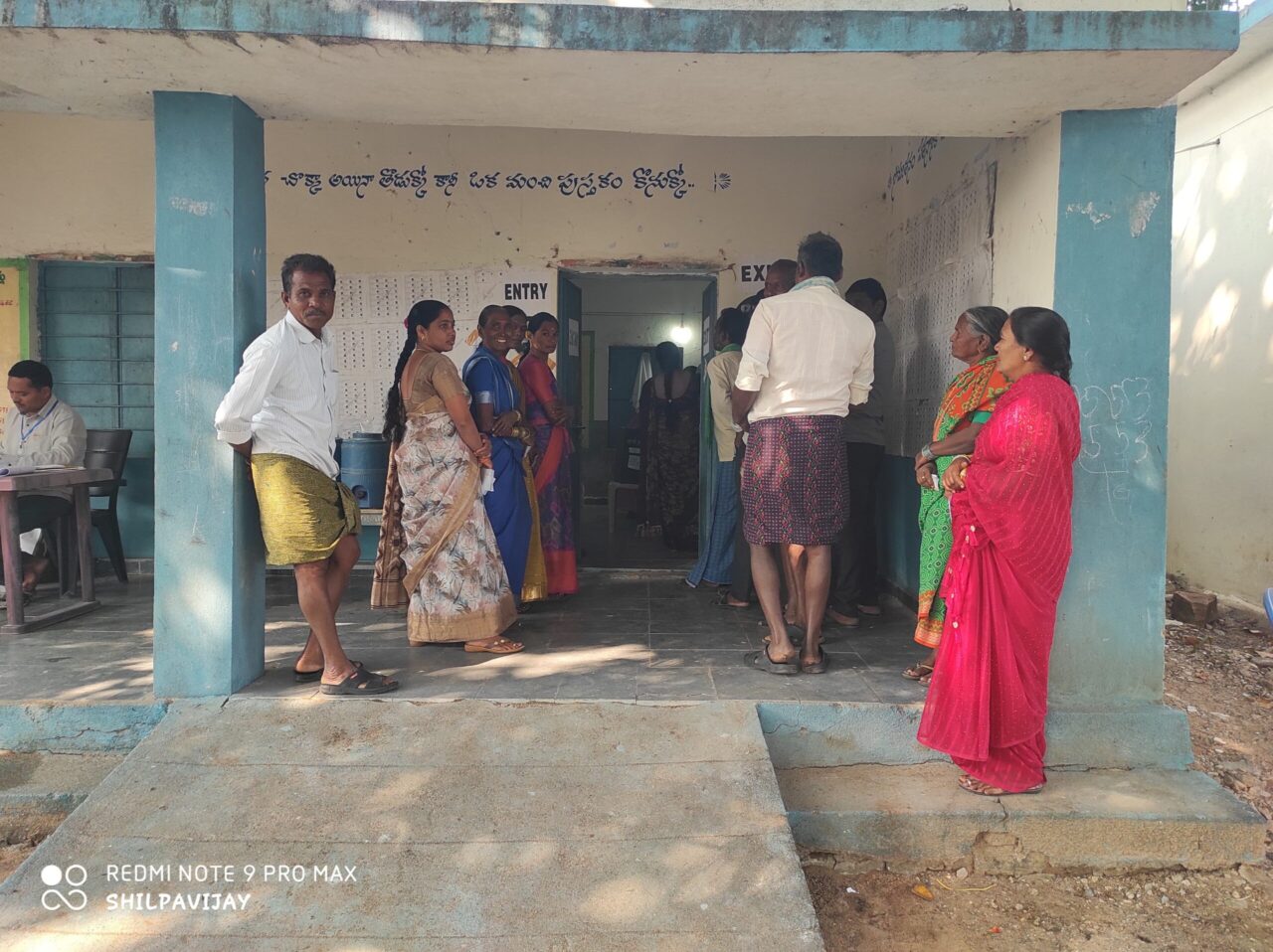 కోటపల్లి మండలం రాంపూర్ లో ఓటు వేసేందుకు నిలబడ్డ ఓటర్లు