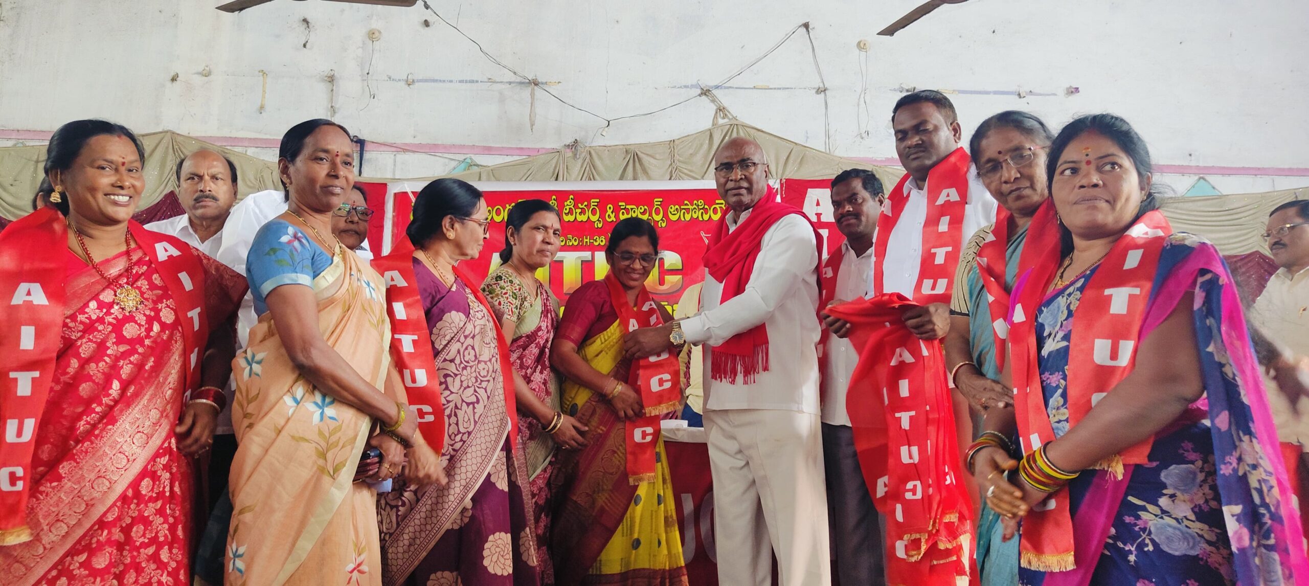 AITUC : ఈరోజు తెలంగాణ అంగన్వాడీ టీచర్స్ అండ్ హెల్పర్స్ అసోసియేషన్ ఆధ్వర్యంలో, ఏఐటీయూసీ యూనియన్లో 200 మందికి పైగా అంగన్వాడీ టీచర్స్, హెల్పర్లు చేరికయ్యారు. ఈ కార్యక్రమంలో సిపిఐ జాతీయ కార్యవర్గ సభ్యులు చాడ వెంకటరెడ్డి, రాష్ట్ర కార్యదర్శి వర్గ సభ్యులు కలవెన శంకర్, తెలంగాణ అంగన్వాడీ యూనియన్ రాష్ట్ర అధ్యక్షురాలు సాయీశ్వరి, జిల్లా ప్రధాన కార్యదర్శి మేకల దాస్, ఏఐటీయూసీ జిల్లా కార్యదర్శి కళిందర్ అలీ ఖాన్, జిల్లా కోశాధికారి తోకల సరస్వతి తదితరులు యూనియన్ కండువాలు కప్పి వారికి స్వాగతం పలికారు.