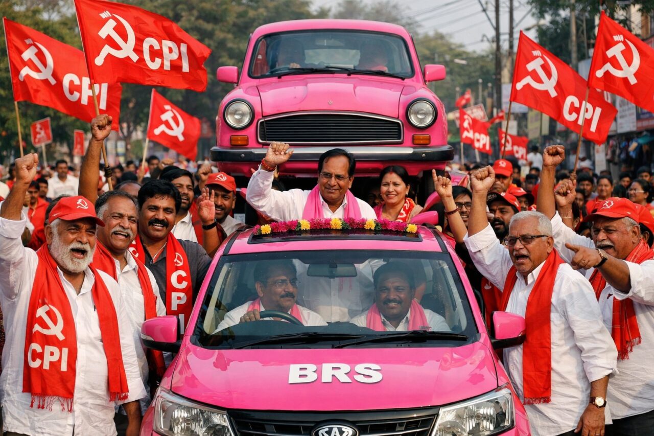 BRS-CPI Alliance: మున్సిపల్ ఎన్నికల నగారా మోగడంతో మంచిర్యాల జిల్లాలో ఒక్కసారిగా రాజకీయ సమీకరణాలు మారతున్నాయి. ముఖ్యంగా మంచిర్యాల కార్పొరేషన్, లక్షెట్టిపేట మున్సిపాలిటీల్లో బీఆర్ఎస్–సీపీఐ పొత్తు కుదరబోతుందన్న ప్రచారం రాజకీయ వర్గాల్లో చర్చనీయాంశంగా మారింది. మారుతున్న సమీకరణాలు స్థానిక నేతలతో పాటు కార్యకర్తల్లోనూ ఉత్కంఠను పెంచుతున్నాయి.