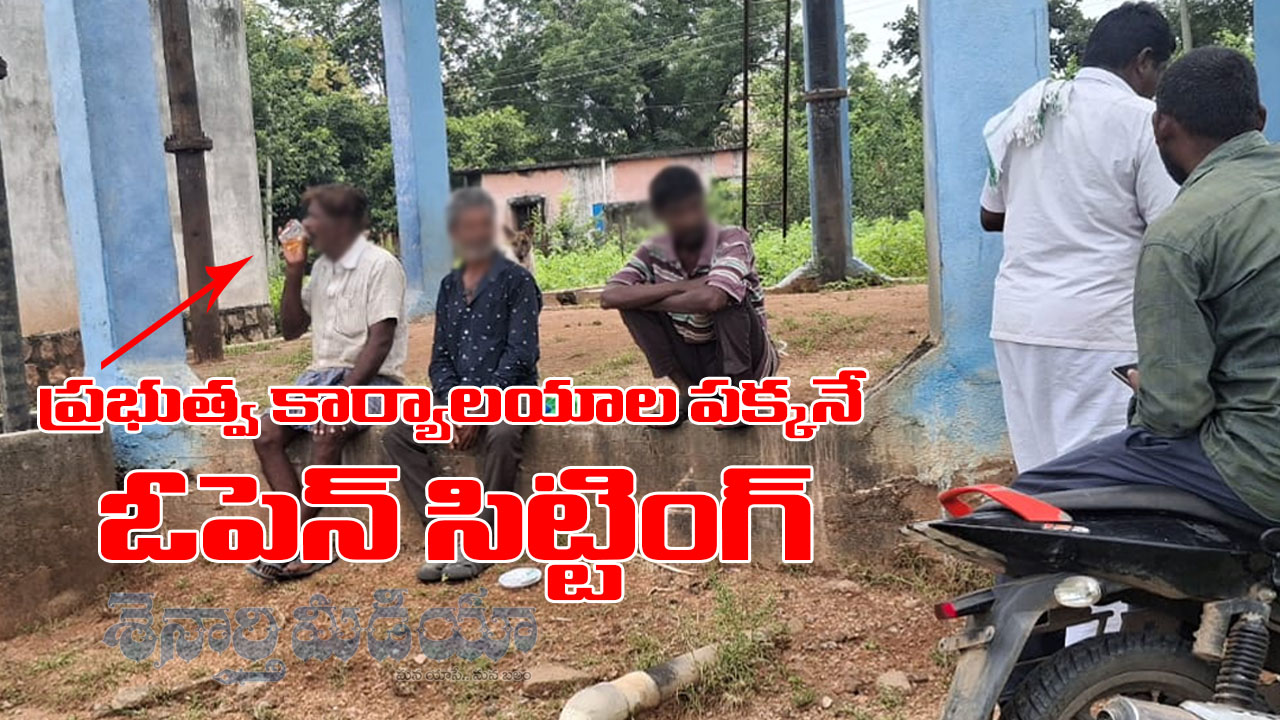 Open Sitting:కూర్చునేందుకు కాస్తంత చోటుంటే చాలు.. ఎంచక్కా రెండు పెగ్గులేసి పోదామనే స్థితిలో ఉన్నారు శంకరపట్నం మండలంలోని కొందరు మద్యం ప్రియులు. అధికారుల పర్యవేక్షణ లోపం.. మందు బాబులకు మరింత కలిసి వస్తుంది. ఓ పక్క తహసీల్దార్ కార్యాలయం, మరో పక్క ప్రాథమిక ఆరోగ్య కేంద్రం, ఇంకో వైపు మండల పరిషత్ కార్యాలయం, మరో వైపు మోడల్ స్కూల్, కేజీబీవీ. వీటన్నంటి మధ్య ఉన్న ట్యాంకు కింద బుధవారం మధ్యాహ్నం పట్టపగలే సిట్టింగ్ వేశారు మందుబాబులు.