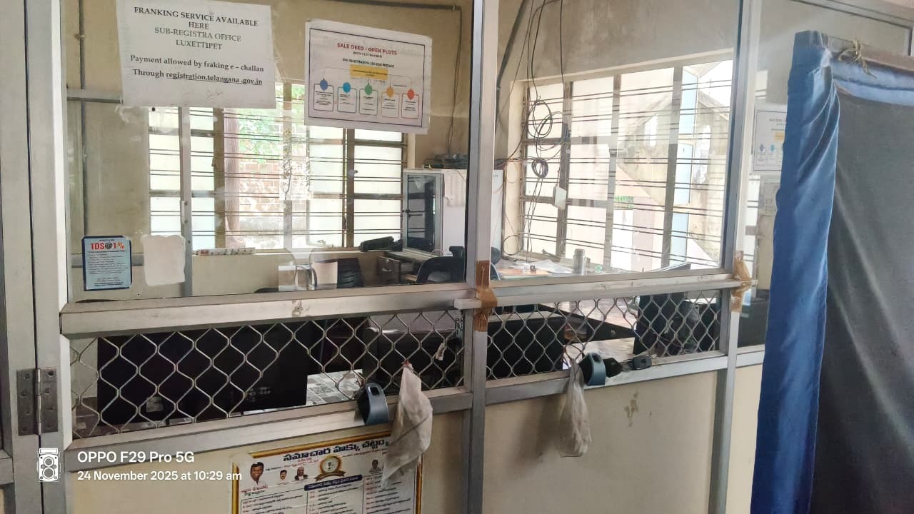 Sub Registror Office Luxettepeta : సోమవారం ఉదయం 10.30 గంటలకు ఖాళీగా కనిపిస్తున్న కుర్చీలు