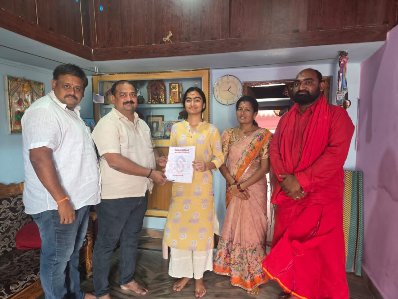 NEET SEATS : మంచిర్యాల కార్పొరేషన్ పరిధిలోని నస్పూర్ విద్యార్థికి నీట్ 2025 ఫలితాలలో అత్యుత్తమ మార్కులు సాధించి కౌన్సిలింగ్ లో ఉస్మానియా మెడికల్ కాలేజీ (OU MEDICAL COLLEG) లో సీటు సాదించింది. ఓ ప్రైవేటు పాఠశాల బస్సు డ్రైవర్ (DRIVER) గా పని చేస్తున్న పారుపల్లి రాజు (RAJU) కూతురు పారుపల్లి ఐశ్వర్యరాజ్ (AISHWARYA RAJ) పదో తరగతి వరకు ఆక్స్ ఫర్డ్ పాఠశాల (OXFORD SCHOOL) లో చదివి ఇంటర్ హైదరాబాద్ లోని శ్రీ వశిష్ట జూనియర్ కళాశాల (SRI VASISTA JUNIOR COLLEGE) లో చదివి డైరెక్ట్ ఇంటర్ మీడియాట్ తోనే నీట్ (NEET) లో అత్యున్నతమైన మార్కులు సాధించింది. మొదటి ప్రయత్నంలోనే నీట్ లో మంచి ర్యాంక్ సాధించిన విద్యార్థిని ఐశ్వర్యరాజ్ ని బుధ వారం శ్రీ వశిష్ట కళాశాల ఏజీఎం (AGM) మీస వేణుమాధవ్ (MEESA VENU MADHAV) , డీజీఎం (DGM) కిరణ్ ప్రసాద్ (KIRAN PRASADH), శంకర్ (SHANKAR) లు ప్రశంసా పత్రం అందజేసి ప్రత్యేకంగా కలిసి అభినందించారు.